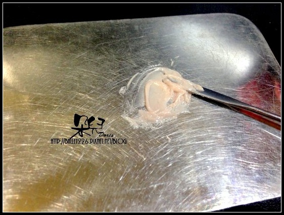 首先先將AB劑的矽膠各挖出等量的1:1於調盤上