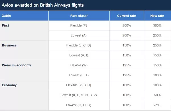 4月28日起,Avios在乘坐英航自己的航班将出现部分调整,影响最大的就是经济舱的累计,部分经济舱又变回了50%和25%。但是与此同时,高价位商务舱以及头等舱的累计有很大的提高,这到是越来越符合现在的趋势:重视高舱位乘客。(不过低仓位的朋友们也不用郁闷,因为Avios也推出了淡旺季兑换。)