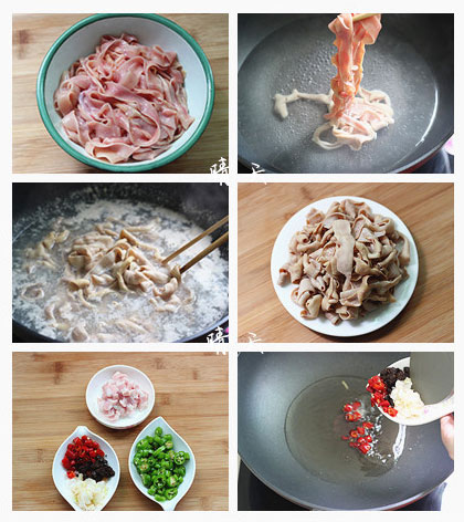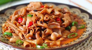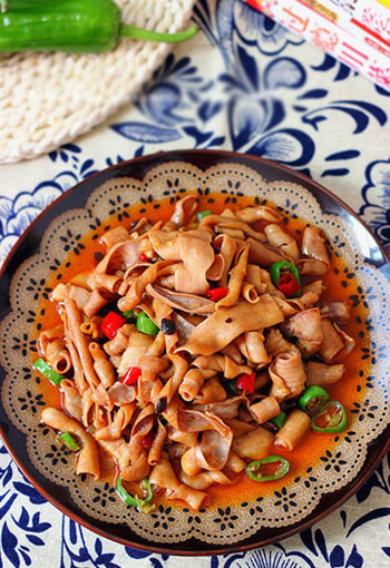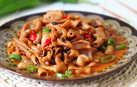 鲜鸭肠500克;猪五花肉30克;二荆条辣椒40克;