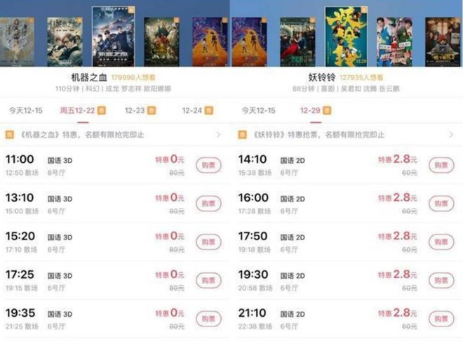 《机器之血》生动诠释了“低价中的高调”,虽然没有大规模宣发,但却猛砸票补。由于淘票票和阿里影业坐镇发行,这部电影在一些场次中甚至出现了0元票价,大量5.8元也击破了票补的底线。