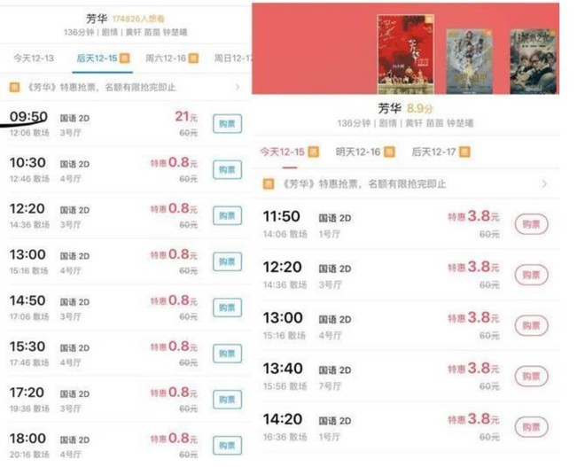 虽然电影有着不少缺点,但《芳华》还是保持了非常理想的口碑。而事实上,这部电影在前期的突围也离不开票补的贡献。据网友披露,《芳华》在早期也曾一度在黄金场次采用0元战略,通过猛砸票补来购得大盘的发言权。