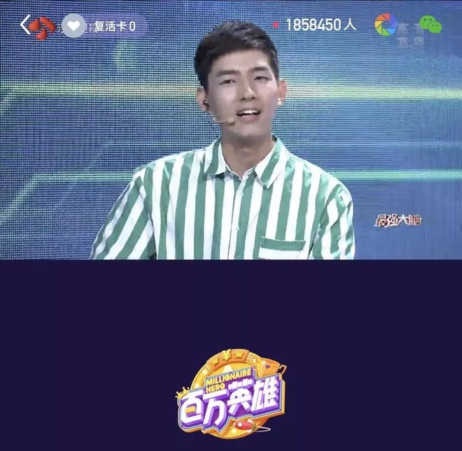 在这样的背景下,西瓜视频与江苏卫视联合出品的电视直播答题节目《最强大脑之百万英雄来烧脑》首次做到了电视和直播答题的跨界融合。1月26日晚,节目在江苏卫视播出,观众可以用西瓜视频app进行手机同步答题。硬糖君也趁着这个机会,做了回真正的答题者。(以下简称“百万英雄烧脑场”)