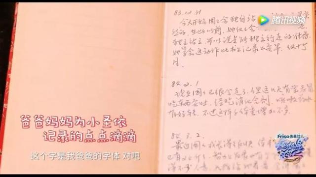 晚餐后,黄圣依妈妈拿起黄圣依小时候的照片,对黄圣依小时候的事情如数家珍。黄圣依的爸爸妈妈还非常细心地记录了育儿日记,细致到时间、体重甚至什么时候开始会说什么话。
