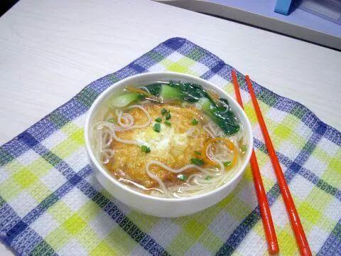 第三天,爸爸还是做了两碗荷包面条,一碗蛋卧上面,一碗上面没有蛋。