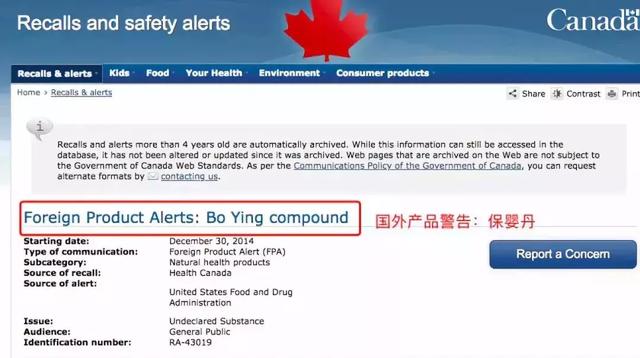 2015 年 2 月,加拿大联邦卫生部发表「国外产品警告」,忠告国民在没有医护人员的专业建议下,切勿服用保婴丹。