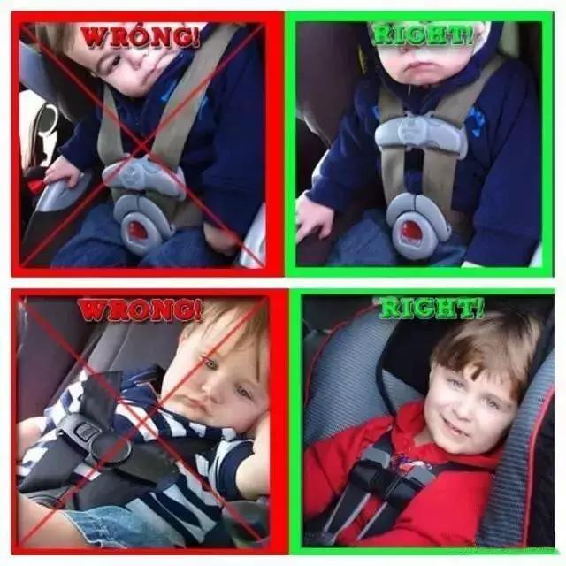 2.胸扣一定要足够往上,务必确保拉到孩子腋下。