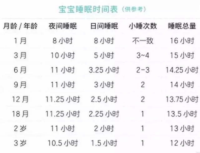 不同月龄段的宝宝睡眠差异非常大(参考下图)。随着孩子慢慢长大,白天小睡的时长和次数也会逐渐减少。即使是同一年龄段的孩子,睡眠的个体差异也存在。