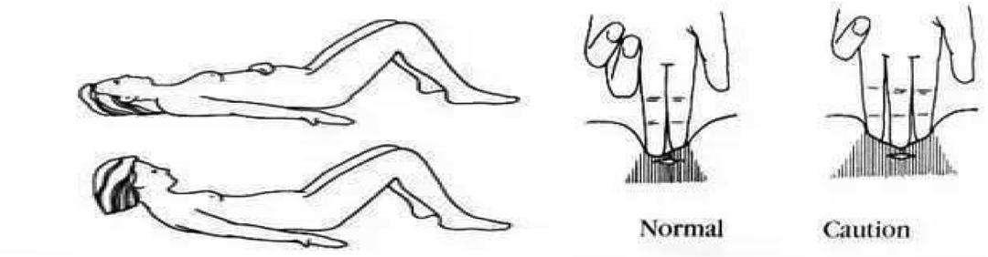 4、此时腹部出现的凹沟即为腹直肌分离部位;以手指度量分离宽度。(上身抬起的时候可以感觉到两侧腹肌向中间挤压手指,如果感觉不到挤压,那么就把手指向两边挪动。直到找到紧张的肌肉,然后测量两侧肌肉的距离。)