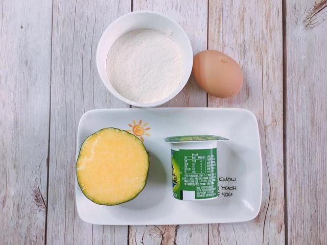 南瓜一块,酸奶一杯,白糖适量,鸡蛋一个,面粉适量。