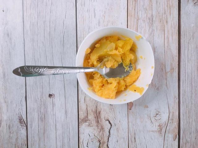 1.南瓜切成小块,上锅大火蒸20分钟左右,蒸熟以后盛出来放到碗里。用小勺子捣成泥状。