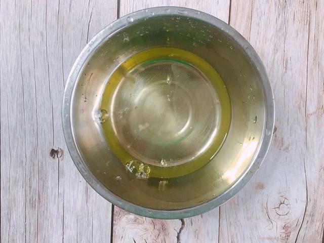 5.把食材装入到裱花袋里面,袋子口剪一个小口。不沾锅底刷少许的油,或者不放油也可以,可以在边缘加一点清水,盖上锅盖。这样出来的饼会更加松软,盖上盖子,小火焖煎以后再翻面。