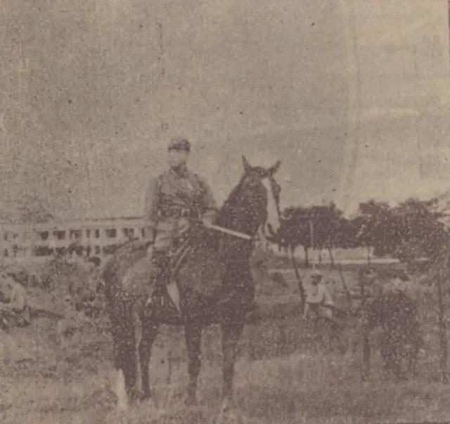1930年代叶琪在广西省公务人员军训中骑马检阅受训者,