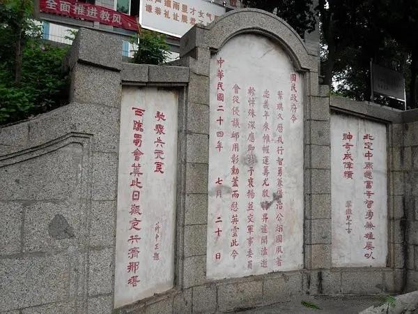 叶琪墓后的蒋介石题联及国民政府褒扬令碑刻。