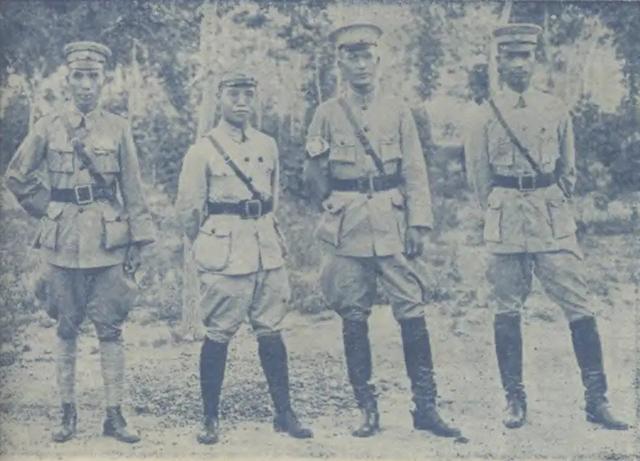 叶琪(左二)与白崇禧(右二)、李品仙(右一)、梁瀚嵩(左一)合影,