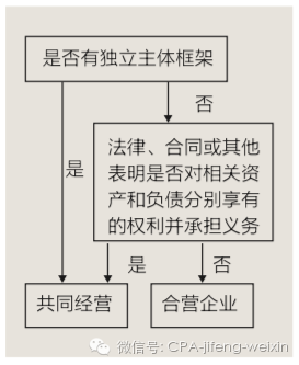 Vehicle)的股权控制其所有者权益。因此,未通过单独主体达成的合营安排应当划分为共同经营。单独主体指具有单独可辨认的财务架构的主体,包括单独的法人主体和不具有法人主体资格但法律认可的主体。包括有限责任公司、合伙企业、合作企业等。某些情况下,信托、基金也可被视为单独主体。通过单独主体达成的合营安排通常划分为合营企业,但有确凿证据表明合营方对安排中的相关资产和负债分别享有权利并承担义务时,则应划分为共同经营。合营方通常通过相关约定享有与该安排相关资产的权利、并承担与该安排相关负债的义务,同时,享有相应收入的权利、并承担相应费用的责任,因此该合营安排应当划分为共同经营。而合营企业强调的是对净资产的分享,这一点和长期股权投资类似。共同经营和合营企业可按照图1所示的步骤进行分类。