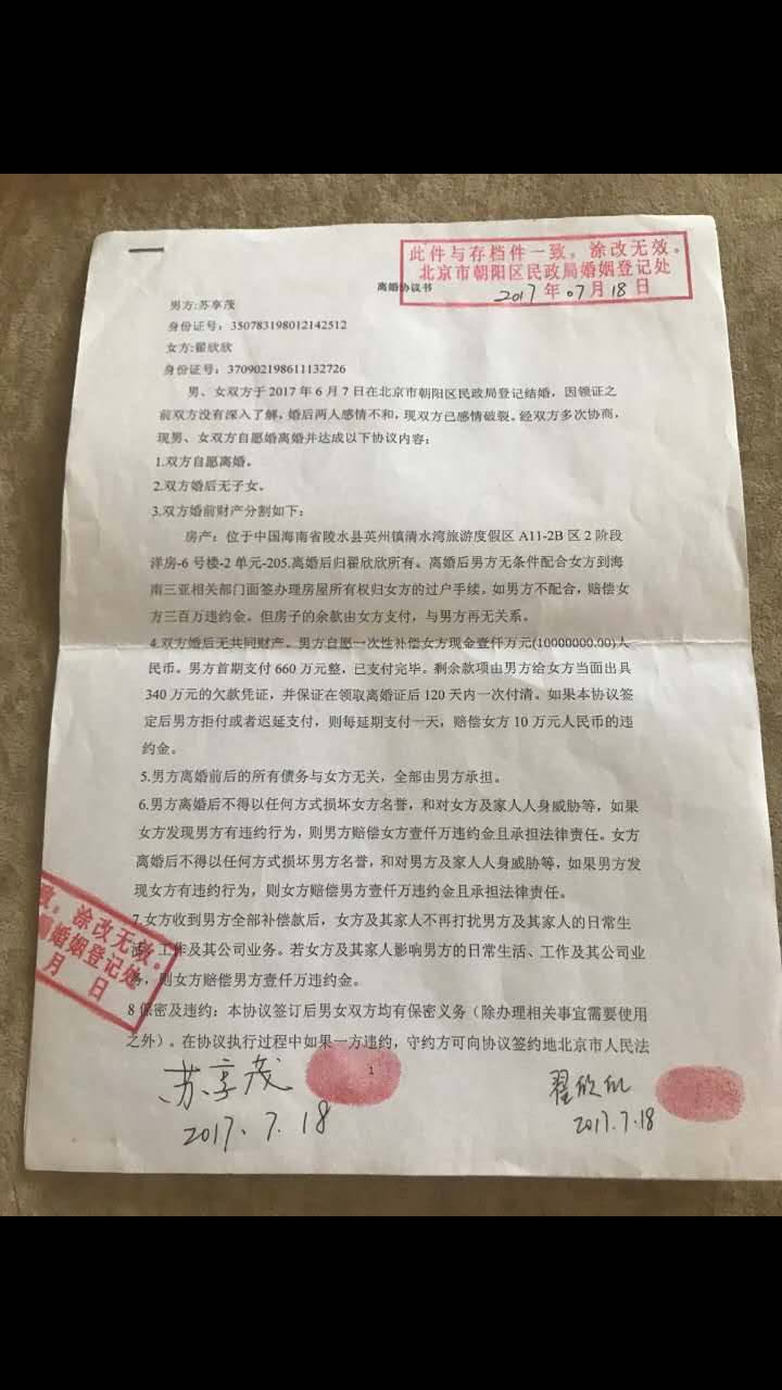 “我承认自己当时太懦弱,在酒店里躲了几天后,身心俱疲,最后竟然无头无脑地签了那个万恶的离婚协议,现在想起来极其羞愤不已。”