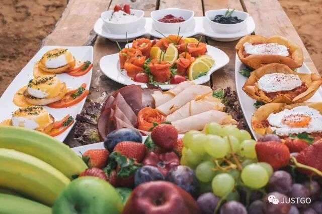 沙丘在黎明中笼罩出一层淡淡的金色,有无比好看的波纹,还会有野生的大羚羊飞快地跑过。
