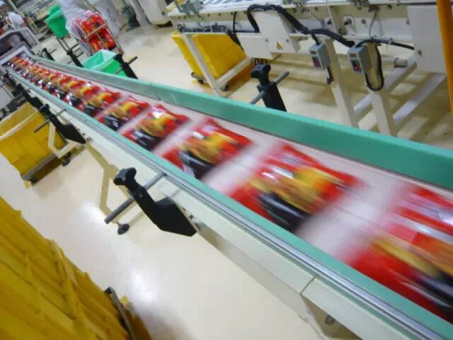 康师傅方便面的生产线可以达到一分钟500包的速度,所以在这包装线上,速度超快,看着看着就眼花了,不得不感叹科技的力量真是强大!