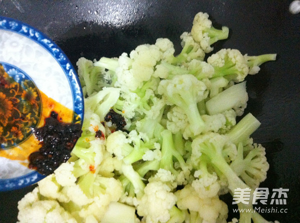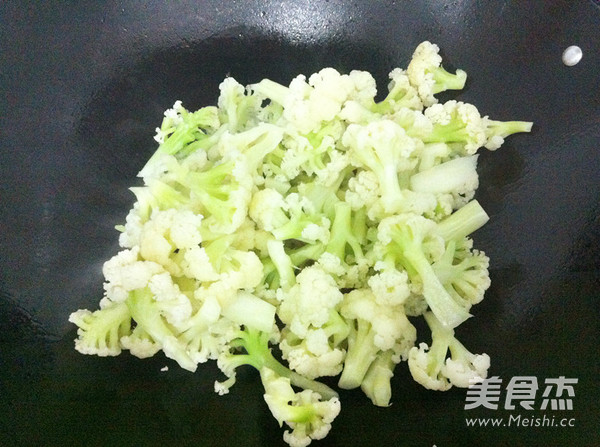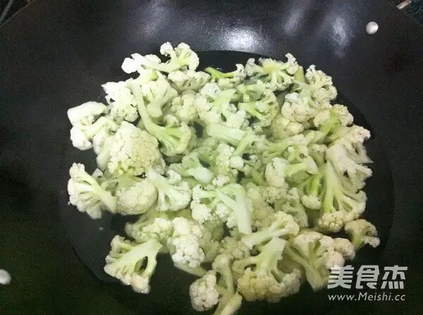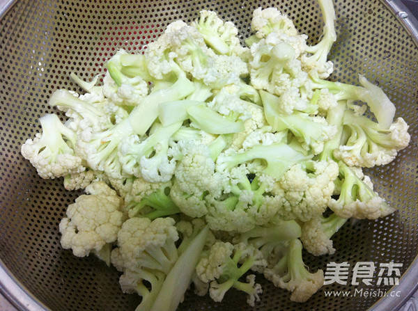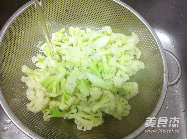 菜花用剪刀煎成小朵,清洗干净捞起沥干水
