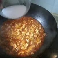 8. 出锅前加入少许淀粉水,让汤汁更加浓稠。
