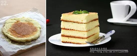 8、在给蛋糕翻面的时候,要等蛋糕表面已经差不多凝固之后才行,如果还是流状的蛋糕糊,那么翻面时很不好操作。