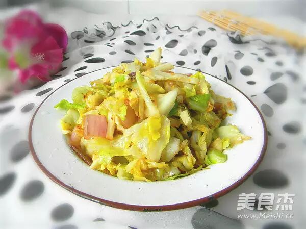大火快炒,炒出来的包菜才清脆,葱香环绕。