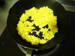 放油锅炒散盛出。