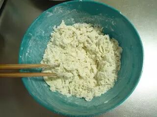 面粉加适量水拌成絮状。