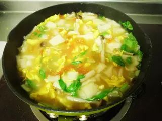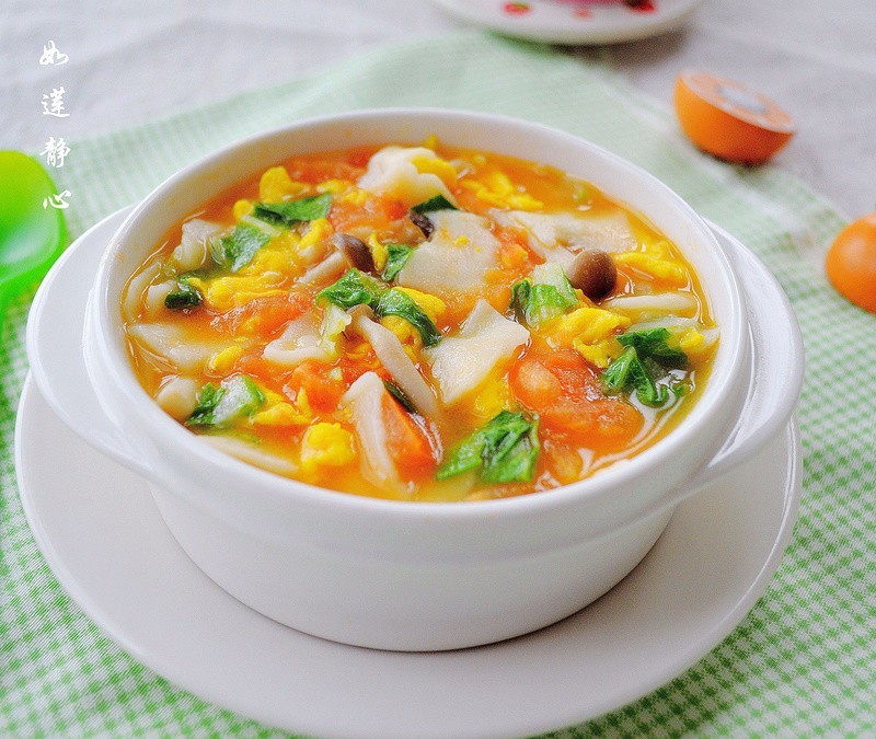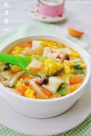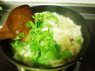 面片煮熟后加入小白菜或者青菜,调盐。