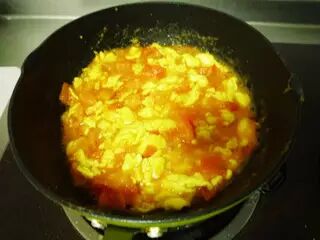 另起油锅,放西红柿炒至变软后盖锅焖一会。