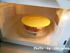 盖上盖子,把南瓜碗放入微波炉,分次转8分钟左右,直至南瓜软烂。