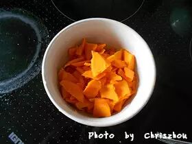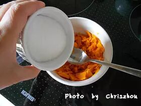 4.南瓜也可以用蒸的,但我觉得蒸出来的南瓜水分比较多,而且用微波炉的比较方便。