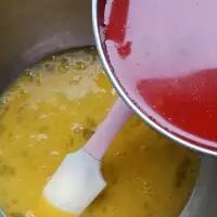 3. 鸡蛋打散加入泡菜汤拌匀