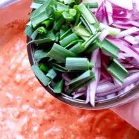 6. 加入洋葱和蒜苗拌匀