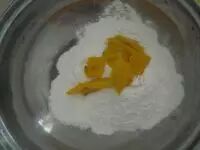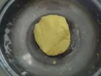 南瓜蒸熟趁热加入糯米粉中。用筷子搅拌,以免烫手。