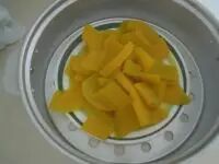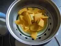 2.蒸熟的南瓜,南瓜很容易熟。