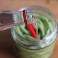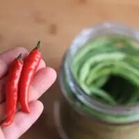 7. 放两个干净的小辣椒,添味儿。