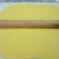 5. 将拌好的面团搓成长条,放在油纸上,用擀面杖擀成与烤盘差不多大小的面皮