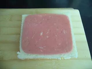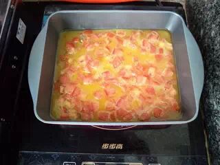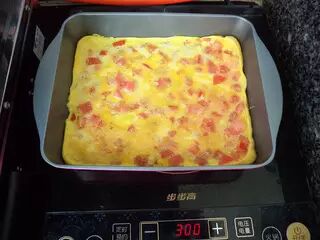 然后用小火把鸡蛋摊熟,放凉切成四方形备用。