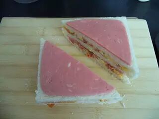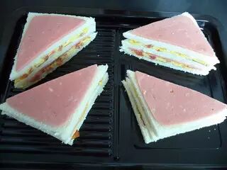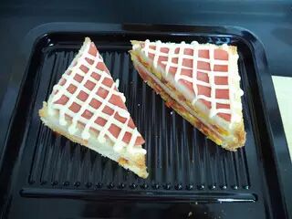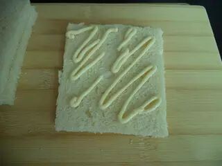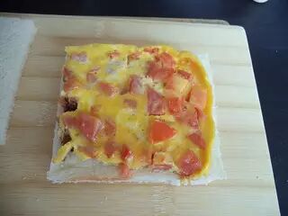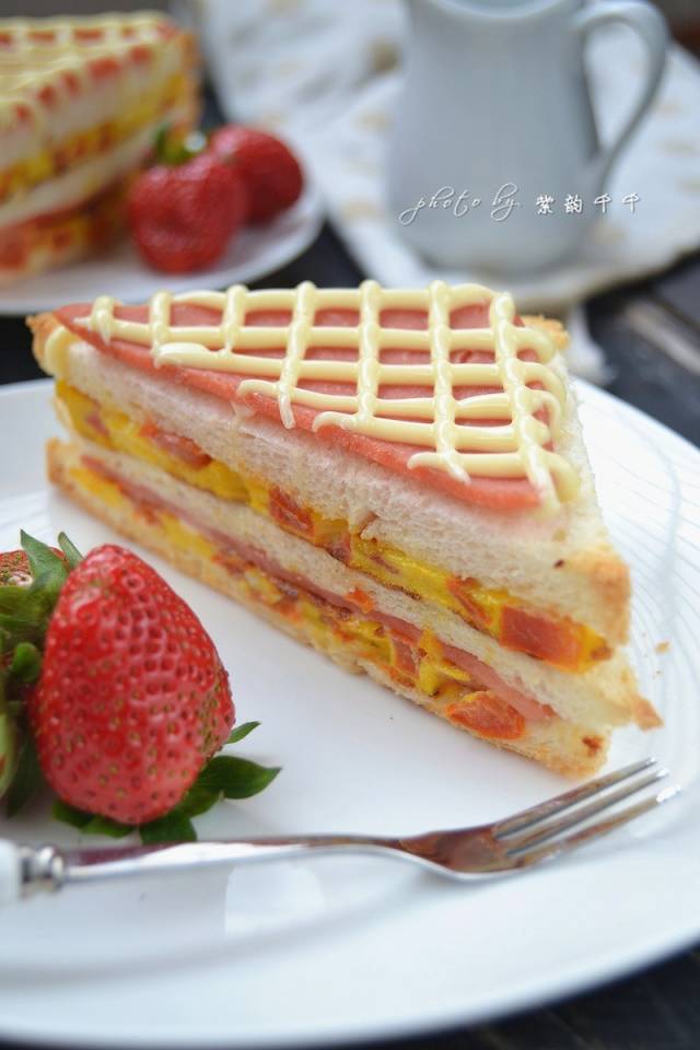 然后放上一片吐司,再挤上沙拉酱放上一片番茄鸡蛋,再放一片吐司