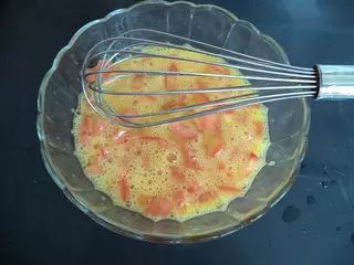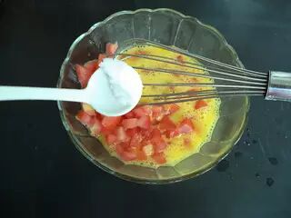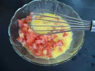 把锅烧热,加入适量的油,再倒入番茄鸡蛋。