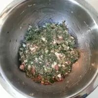 1. 荠菜多清洗几次,彻底清洗掉荠菜里的泥沙和尘土,然后将清洗干净的荠菜放开水里烫30秒马上捞出放冷水里冰一下,在捏干荠菜里的水分,最后剁碎备用。