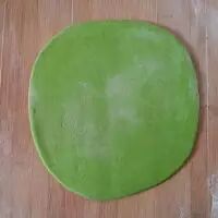 6. 将面团重新揉5分钟左右,揉好以后取面团的二分之一擀成较厚的圆形。