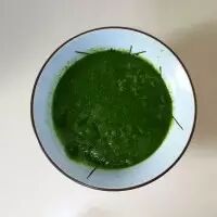 4. 另被80克荠菜加清水放料理机里搅打成荠菜汁。荠菜和清水的比例为1:1.