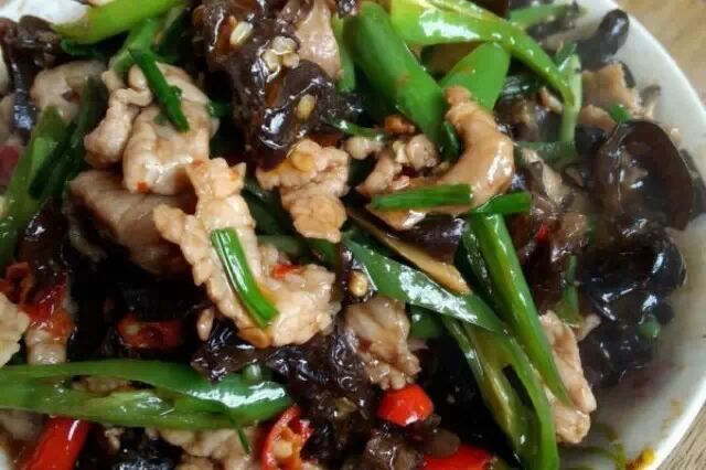 1. 第一步:先把肉片切好,用淀粉酱油抓匀放置一边,作料:小米辣,姜丝,蒜白,小葱段,青椒丝,木耳各自切好备用,