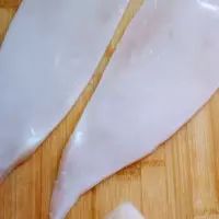 2. 很肥的大鱿鱼阿,用剪刀从中间剪开,去掉内脏,眼睛牙啥啥的