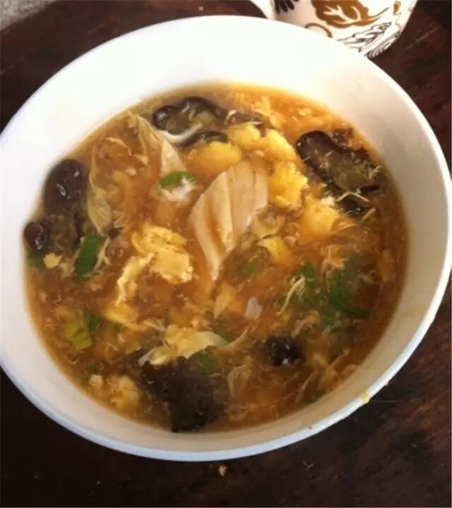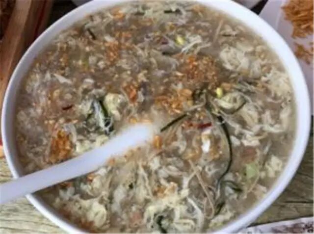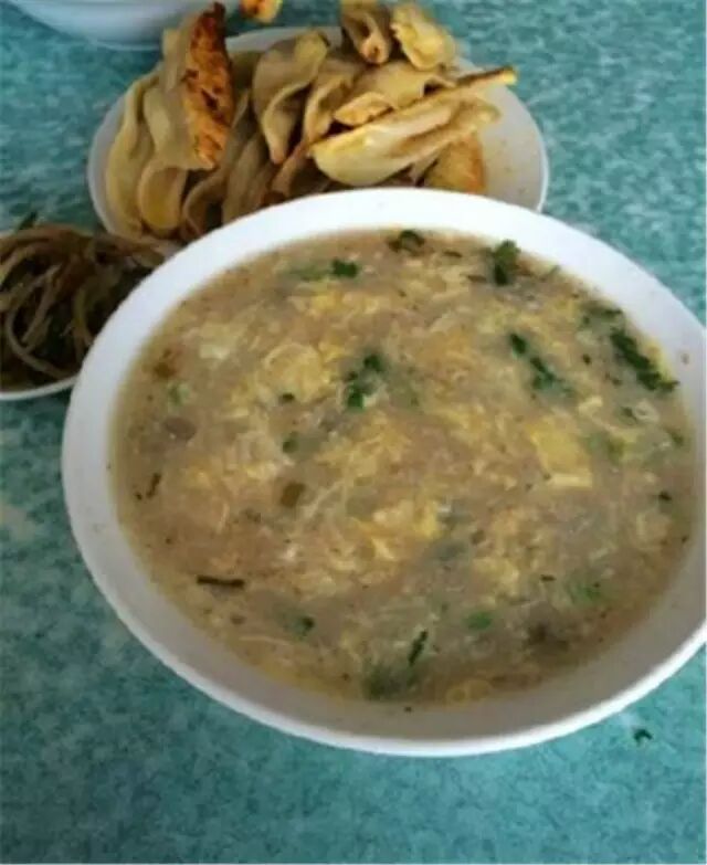 苏鲁豫皖四省交界地区流行的一种很“复杂”的汤,没搞明白里面都放了些啥,我能猜出来的有鸡高汤和鸡蛋。