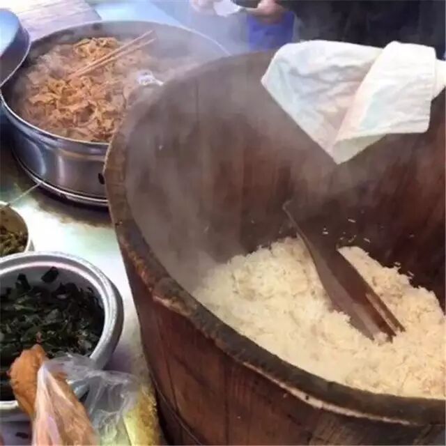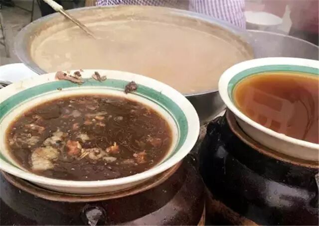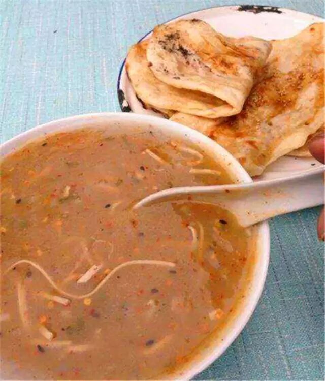 羊肉或鸡肉、鸡蛋、海带、千张丝一系列食材丰富到汤里,吃的时候加上店铺自制的辣酱,配上锅贴、烧饼、油条,或者老面包,吃出一身老汗。讲究点的还放黄鳝丝。