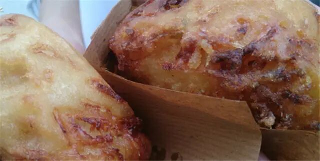 油端子是本地人的叫法,实际就是江浙一带都很流行的萝卜丝饼。南京的油端子成品像老式鸡蛋糕,侧面凸凹的纹路,是由专门制作油端子工具做成的。