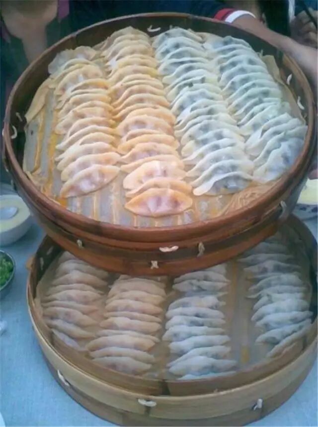 透过皮色,区分辣和不辣两种味道,辣的一般是萝卜丝馅儿的,不辣的似乎是肉末豆腐调馅儿的。